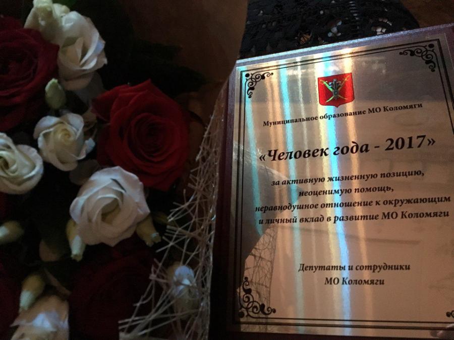 Премию «Человек года» получили руководители учреждений, расположенных на территории МО Коломяги: директор детской поликлиники № 30 Громова Татьяна Самуиловна, заведующая офисом врача общей практики поликлиники № 102 Лемешевская Инна Михайловна, председатель Совета ветеранов Галашова Тамара Алексеевна, руководитель творческой мастерской «L’Art» Пахтусова Лариса Геннадьевна, заведующая библиотекой № 7 Воробьева Наталья Викторовна, а также жители нашего округа: Белавинский Николай Алексеевич, Бирук Сергей Александрович, Гусева Диана, Захарова Анжелика Михайловна, Капустин Алексей Алексеевич, Киселева Зинаида Алексеевна, Куприянова Татьяна Васильевна, Линевич Владимир Николаевич, Мищенко Дарья Федоровна, Отсинг Дмитрий Валерьевич, Пронин Игорь Валентинович, Родин Николай Григорьевич, Соколов Илья Станиславович, Соколова Светлана Владимировна, Соловьев Александр Борисович, Степанова Мария Сергеевна, Чайков Сергей Юрьевич, Чебатарева Татьяна Яковлевна, Шестаков Юрий Прокопьевич, Шустова Валерия Петровна.