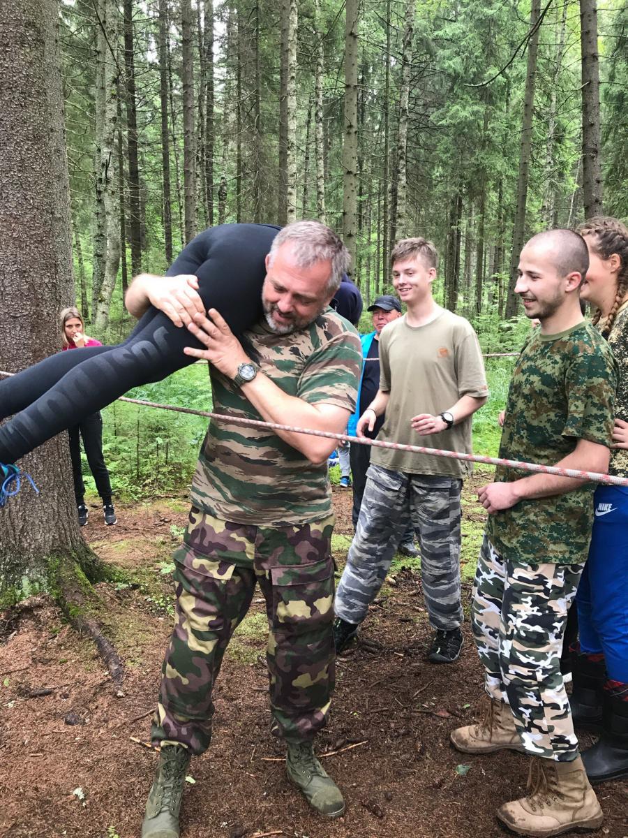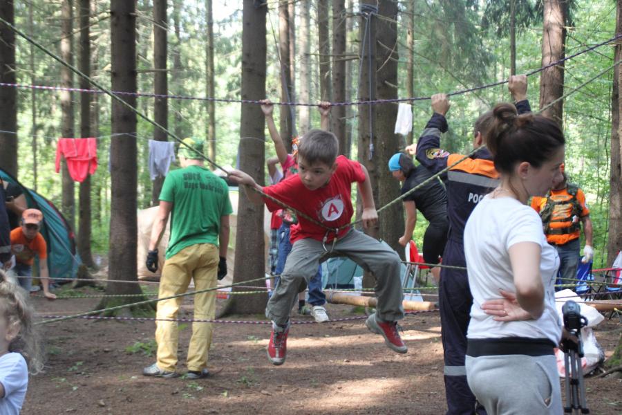 Второй день был очень богат на приключения, потому что между командами развернулись соревнования на скорость, смекалку, меткость и ловкость: им предстояло спасти утопающего, пронести раненого в лабиринте, переправиться через реку по веревочной переправе и побороться за звание самых метких стрелков в тире.