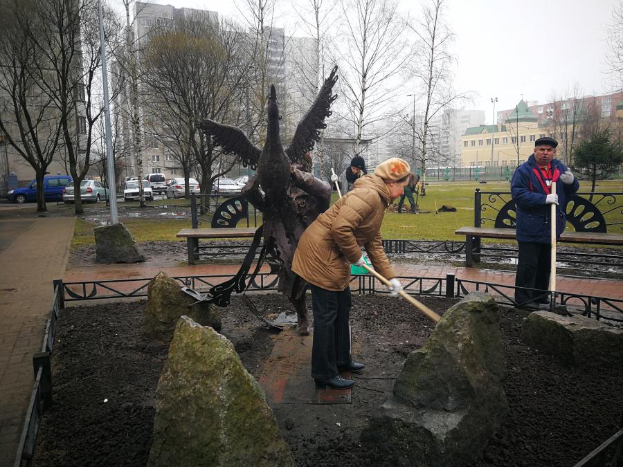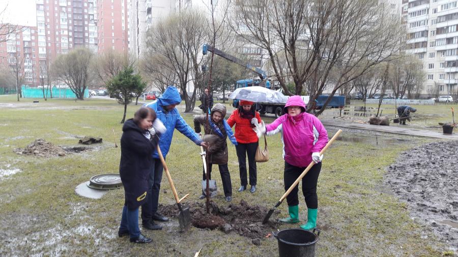 В ходе субботника от песка и мусора были очищены детская и спортивная площадки по адресу ул. Афонская, д. 16. Там же посажены 10 деревьев — 6 яблонь и 4 груши. Депутат Муниципального Совета Елена Юрьевна Степанова посадила трех своих «тезок» — сорт яблонь носит имя «Елена». Деревья устойчивы к морозам и могут быстро восстанавливать свои силы с наступлением оттепели. По словам Елены Юрьевны, яблони для посадки были выбраны неспроста. Дело в том, что на площадке находится кованая композиция «Жар-птица», а, как известно, сказочная птица прилетает в сады за молодильными яблоками. «Скульптуру установили несколько лет назад, и яблонь нам не хватало», —  говорит депутат.