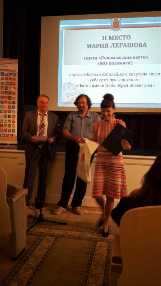 II место в номинации «Лучшая публикация по обращениям читателей» получила заместитель главного редактора Мария Легашова за серию статей, посвященную собаке по имени Дейк. В статье под названием «Жители Юбилейного квартала спасли собаку от рук садистов» рассказывалось о несчастном псе, которого регулярно избивали хозяева-садисты. Жители нашего округа сплотились и отбили собаку от рук садистов. Об этом событии написали все ведущие СМИ Санкт-Петербурга, но, что приятно, активист Светлана Соколова признала «самой правдивой и интересной» статью, опубликованную в газете «Коломяжские вести». Именно поэтому редакцию пригласили написать продолжение этой истории, предложив встретиться с новыми хозяевами собаки.