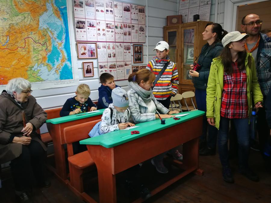Кормили блокадников в здании трехклассной школы, где сейчас располагается музей. Одна из экспозиций современного музея и представляет тот школьный класс с четырьмя партами — население в Кобоне всегда было немногочисленным. Класс воссоздан по чертежам того времени. На школьных партах стоят чернильницы и лежат прописи 40-х гг. Экскурсантам разрешается посидеть за партой и порисовать на листках с прописями.
