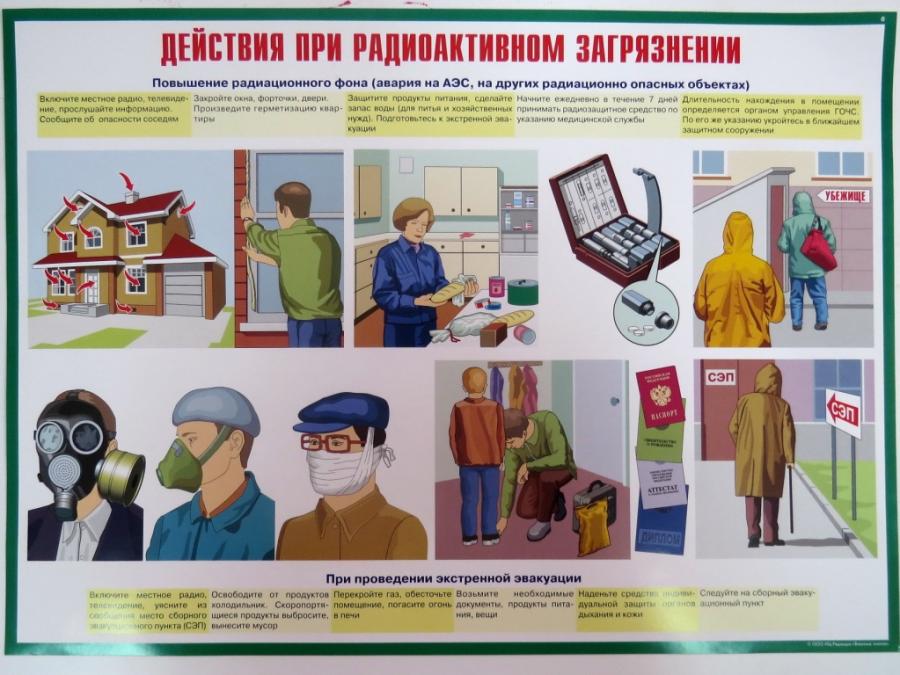 Если в поступившей информации отсутствуют рекомендации по действиям, необходимо защитить органы дыхания от радиоактивной пыли (респираторами, ватно-марлевыми повязками или подручными средствами — шарфами, платками, другими тканевыми изделиями) и по возможности быстро укрыться в ближайшем здании, лучше всего в собственной квартире.