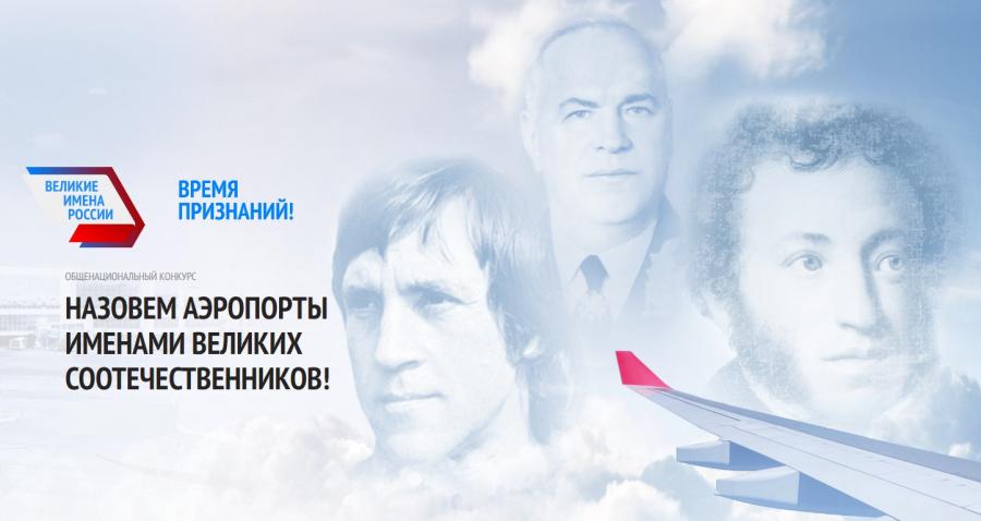 Проект «Великие имена России», созданный при поддержке Русского географического общества, Российского исторического общества, Общества русской словесности и Российского военно-исторического общества, позволит сделать это повсеместной практикой. Великие имена, навсегда вписанные в историю, продолжат жить в названиях аэропортов, олицетворяя победы и достижения нашей страны.