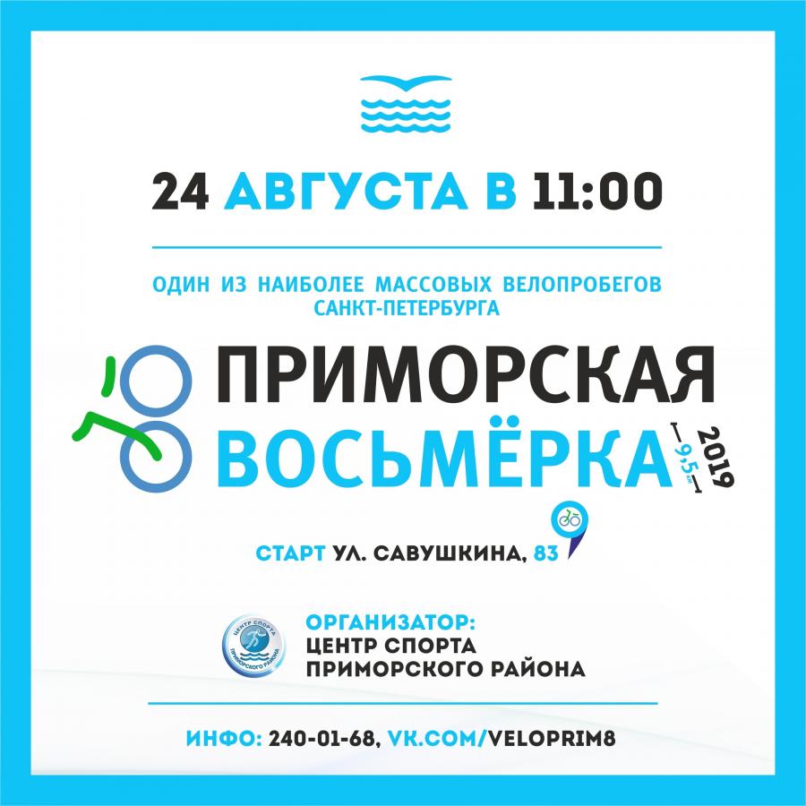 24 августа в 11.00 от здания администрации Приморского района (ул. Савушкина, д.83) стартует традиционный велопробег "Приморская восьмёрка".