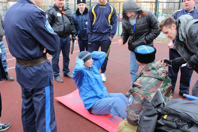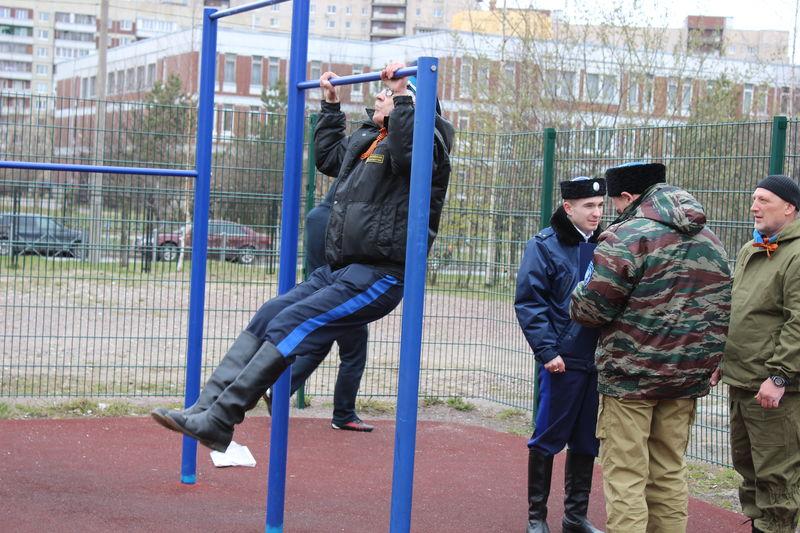 Спортивный праздник по сдаче норм ГТО начался в 11.30 на территории стадиона 634 школы Приморского района – ровно за полчаса до начала торжественного открытия мероприятия, запланированного МБУ «Развитие» в соответствие с муниципальным заданием, утвержденным МА МО Коломяги. Первыми прибыли казаки хутора «Приморский» во главе с атаманом Алексеем Капустиным и совместно со специалистами МБУ приняли активное участие в формировании судейских бригад, подготовке мест сдачи отдельных нормативов ГТО (подтягивание на перекладине, сгибания-разгибания рук в упоре лежа, сгибание туловища вперед из положения лежа на горизонтальной поверхности и наклонной доске, прыжки в длину с места, бег на 100 м, а также стрельба из пневматической винтовки).