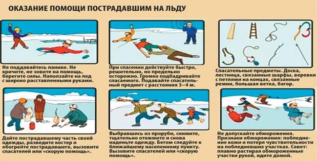 Рыбакам рекомендуется иметь при себе шнур длиной 12–15 м с грузом на одном конце и петлей на другом, длинную жердь, широкую доску, нож или другой острый предмет, с помощью которого можно будет выбраться на лед в случае провала.