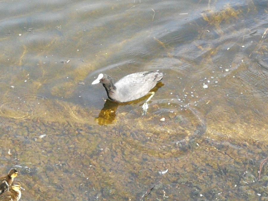 Удельный парк во время карантина стало посещать гораздо меньше людей, чем раньше. Возможно, в связи с этим здесь стали появляться редкие птицы. Пруд рядом с парком для посещения не закрыт, и здесь можно покормить птиц, преимущественно уток и чаек. Неожиданно среди уток, плывущих к нам из камышей, мы заметили черную птицу с белым пятном на голове и белым клювом. Необычная птица выделялась на фоне уток и чаек своим странным стилем плавания и умением нырять. Она как будто шла по дну и была более пуглива, чем утки, всем своим видом показывая, что является редким гостем в «удельных» краях. «Это лебедь!» - закричали дети, вызвав улыбки у прохожих. Мы предположили, что это нырок, и сделали несколько фотографий необычной утки. Однако оказалось, что это вовсе и не утка, а скорее журавль - птица из семейства пастушковых и отряда журавлеобразных и называется «лысухой». Об этом рассказал нам, взглянув на фотографии, кандидат биологических наук, старший научный сотрудник Зоологического института РАН Игорь Доронин, проживающий в Коломягах. Он отметил, что это не такой уж и редкий вид птиц, обитающий в окрестностях Санкт-Петербурга. Тем не менее, «наш журавль», как прозвали птицу дети, моментально стал их любимцем, и на следующую прогулку корм был приготовлен специально для него. Но когда мы вернулись на пруд, лысуху не обнаружили.
