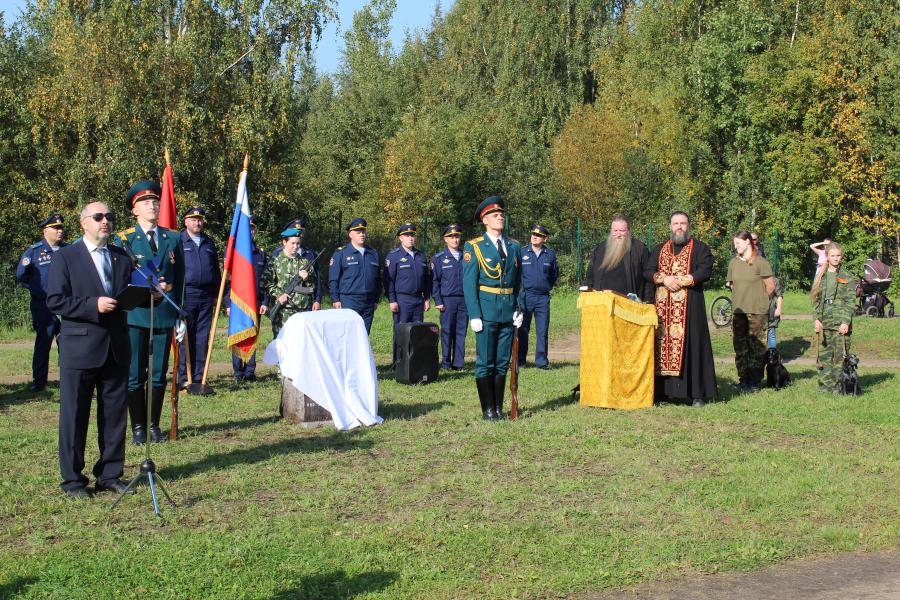 Николай Сергеевич Кириллов также выступил с приветственным словом: «Уважаемые друзья, разрешите мне выразить искреннюю благодарность организациям и отдельным людям, которые поддержали идею данного проекта. Монумент символизирует единение всех силовых структур перед народом. Заслуга людей, которые погибли при исполнении боевого долга, неоценима. Памятник предназначается тем людям, последней минутой жизни которых, был подвиг. И этот подвиг, воплощенный в камне, будет воспитывать подрастающее поколение, которое сегодня здесь присутствует!»