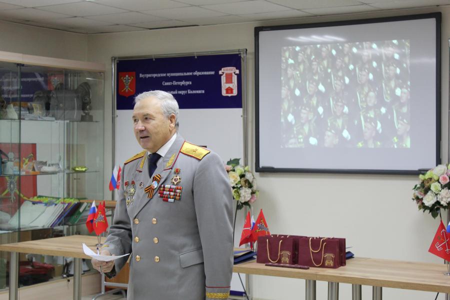 Поздравления и напутственные слова прозвучали также от военного комиссара Олега Анатольевича Лашко и председателя ДОСААФ Приморского района Владимира Николаевича Ромашова. Поздравил ребят и заместитель Главы Муниципального Совета Владимир Дмитриевич Крылов, рассказавший о том, что большинство депутатов нашего Муниципального Совета имеют офицерские звания.