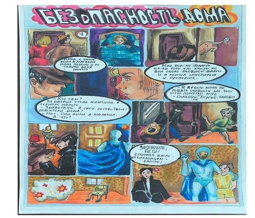 Подведены итоги районного этапа конкурса детских тематических рисунков-рассказов в картинках «Комикс безопасности» среди учащихся образовательных учреждений. Конкурс был организован Главным Управления МЧС России по Санкт-Петербургу и Санкт-Петербургским городским отделением Общероссийской общественной организацией «Всероссийское добровольное пожарное общество» Целью конкурса являлось: привлечение внимания общественности к проблемам безопасности жизнедеятельности детей и подростков, а также с целью предупреждения чрезвычайных ситуаций с участием детей, воспитание чувства патриотизма у подрастающего поколения, чувства популяризации профессии спасателя и пожарного, формирование сознательного и ответственного отношения к личной безопасности и безопасности окружающих в том числе повышение социальной активности подростков.