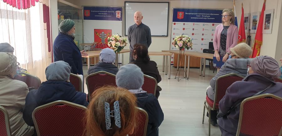 15 апреля в муниципалитете состоялось чествование малолетних узников фашистских концлагерей. Заместитель Главы МО Коломяги Владимир Дмитриевич Крылов пожелал ветеранам крепкого здоровья, счастья, весеннего настроения и выразил им особую благодарность за проявленное мужество и стойкость.