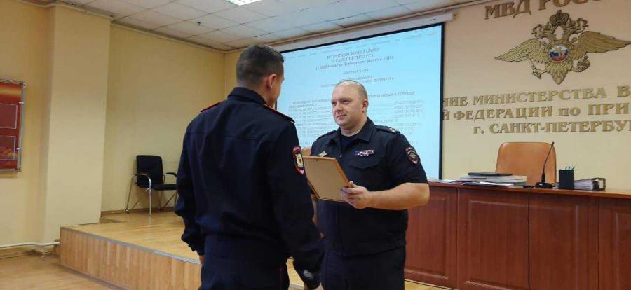 30 апреля 2021 года начальник УМВД России по Приморскому району г. СПб полковник полиции Саунин Евгений Валерьевич вручил Благодарности от начальника ГУ МВД России по г. СПб и ЛО генерал-лейтенанта полиции Р.Ю. Плугина особо отличившимся сотрудникам Управления.