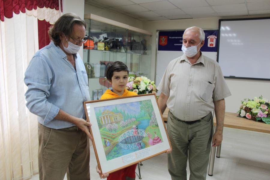 Глава МО Коломяги Сергей Эдуардович Борисенко среди семейных работ выделил картину, на которой изображен Графский пруд. Ему особенно понравилось то, что на картине мы видим не современность, а то, как излюбленное место коломяжцев могло бы выглядеть в старину. Авторы этой картины – Михаил Петрович и Кристоф Нардины, дедушка и внук. Михаил Петрович всю жизнь работал врачом и в свободное от работы время рисовал картины. Все места, где он трудился, теперь украшены его произведениями. Дедушка особенно рад, что внук, ученик 6-го класса 42-й гимназии, также приобщается к прекрасному, помогает ему в творчестве и обожает художников-импрессионистов. Сюжет «Графского пруда» они продумывали не один месяц: изучали историю Коломяг, искали старинные фотографии, узнали, что сам Пушкин неоднократно гостил в усадьбе. Что приятно, на награждении конкурсантов Нардины решили подарить свое творение муниципалитету.