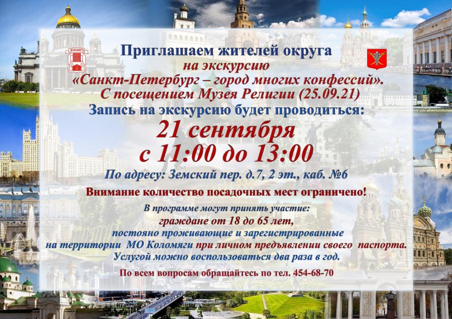 Для  записи на обзорную экскурсию по городу «Санкт-Петербург – город многих  конфессий», посещением Музея Религии , Вам необходимо пройти по ссылке и  заполнить форму заявки: https://forms.gle/LMBhx6Bw8YYVRP5J8