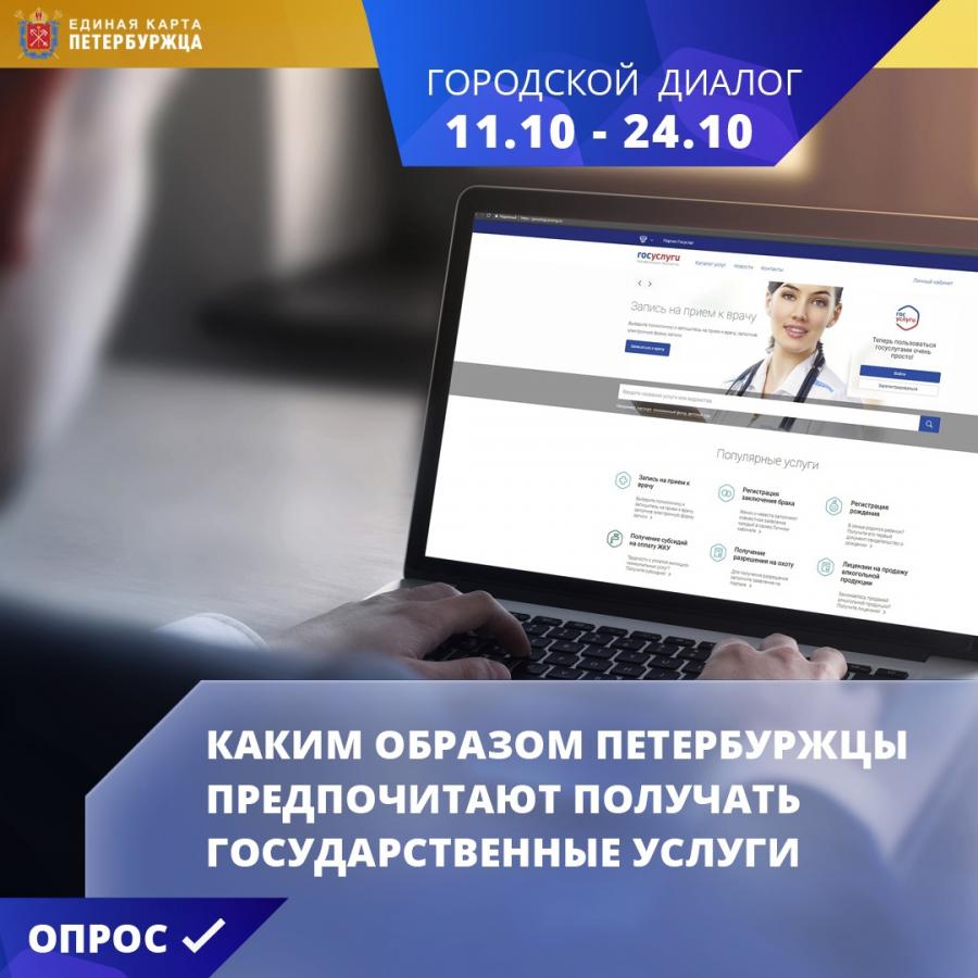 С 11 по 24 октября на портале и в мобильном приложении «Единой карты петербуржца» ekp.spb.ru проходит опрос, каким способом петербуржцы чаще всего получают государственные услуги. Предпочитают ли горожане получать услуги электронным способом через специализированные порталы госуслуг или отправляются в офисы МФЦ или других организаций, предоставляющих госуслуги, за какими услугами чаще всего обращаются в госорганы – покажут результаты опроса.