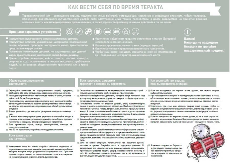 Укрепить и опечатать входы в подвалы и на чердаки, установить решетки, металлические двери, замки, регулярно проверять их сохранность; установить домофон; организовать дежурство граждан (жильцов) по месту жительства; создать добровольные дружины из жильцов для обхода жилого массива и проверки сохранности печатей и замков; обращать внимание на появление во дворах незнакомых автомобилей и посторонних лиц; интересоваться разгрузкой мешков, ящиков, коробок, переносимых в подвал или на первые этажи; не открывать двери в подвалы и на чердаки неизвестным людям; освободить лестничные клетки, коридоры, служебные помещения от загромождающих их предметов.
