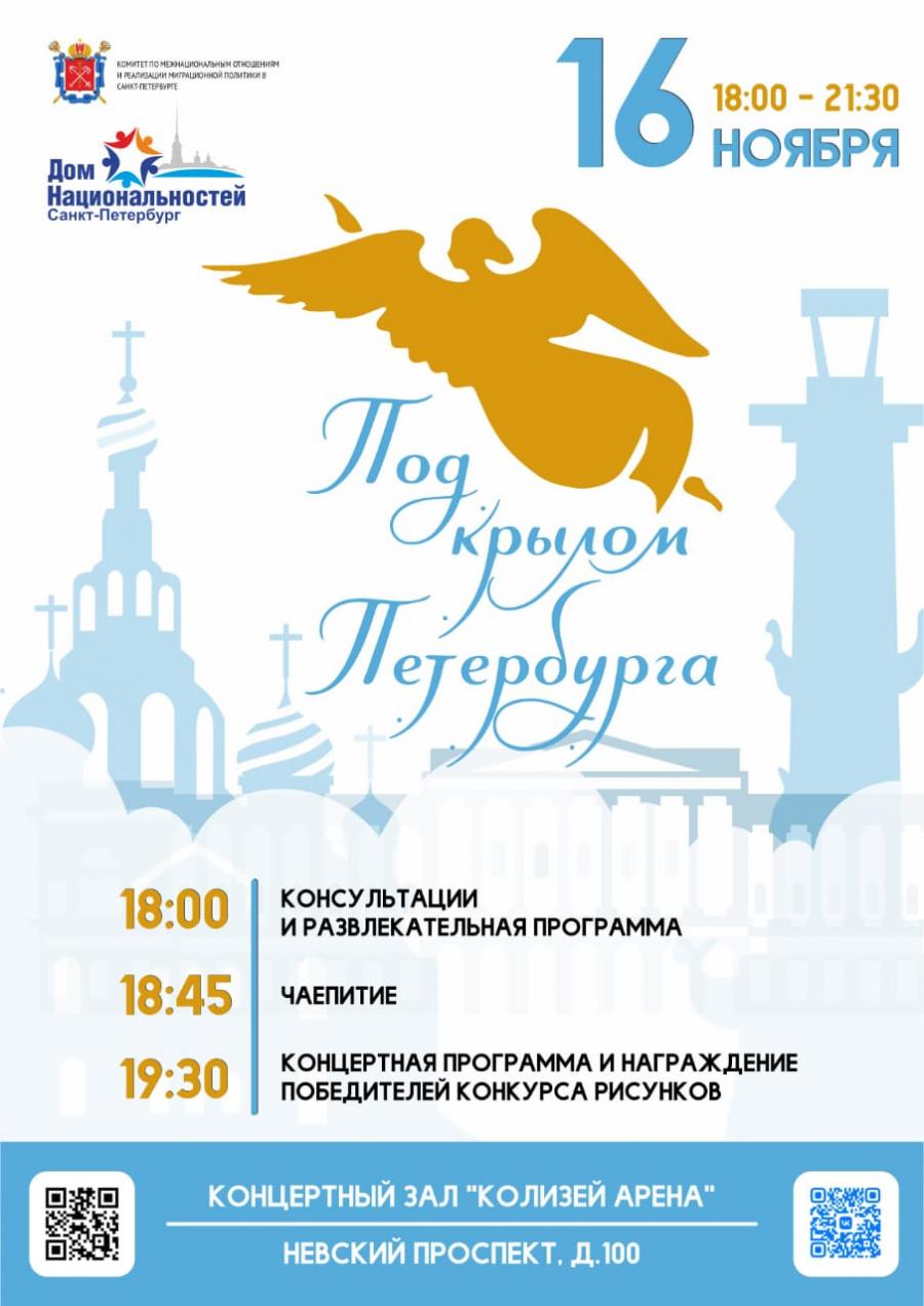 16 ноября приглашаем иностранных граждан, работающих и проживающих в Санкт-Петербурге, на фестиваль «Под крылом Петербурга» в концертный зал «Колизей Арена».
