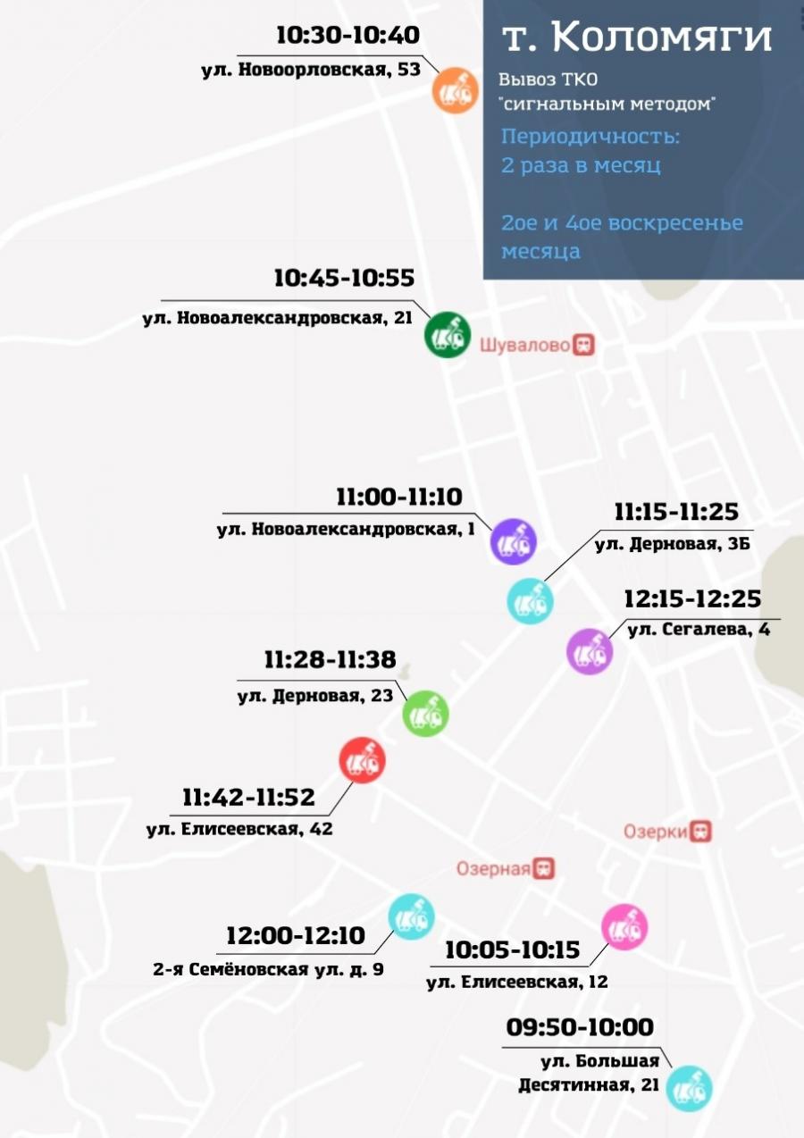С 19 марта 2023 года, на территории индивидуального жилищного строительства МО Коломяги, дополнительно определены следующие адреса по сбору ТКО «сигнальным методом»:
