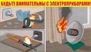 Чтобы избежать пожаров при эксплуатации электроприборов, необходимо соблюдать простые правила безопасности. Научите детей правильно пользоваться бытовыми электроприборами. Ни в коем случае нельзя пользоваться неисправной техникой. Это может привести к задымлению, пожару, поражению электрическим током. При отключении приборов из розетки запрещается тянуть за шнур, только за вилку! Напомните своим детям, что ни в коем случае нельзя оставлять включенные электрические приборы без присмотра - это самая распространенная ситуация, когда возникают пожары. Если произошло возгорание розетки необходимо сразу обесточить помещение. Электрический щиток с рубильником может находиться в квартире или на лестничной клетке. Во втором случае номера квартир написаны около счетчиков.