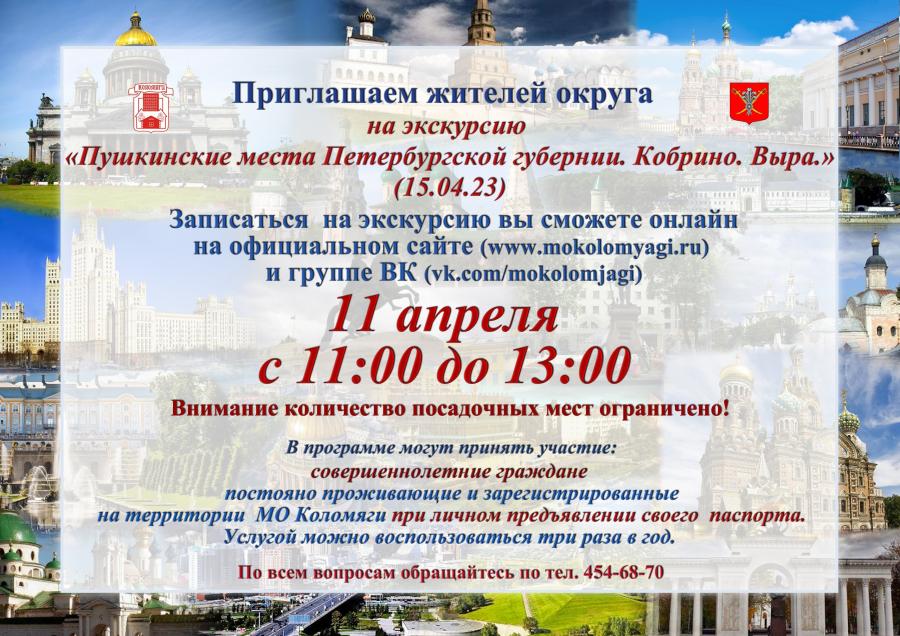 - Экскурсия для совершеннолетних граждан (от 18 лет), постоянно зарегистрированных на территории МО Коломяги