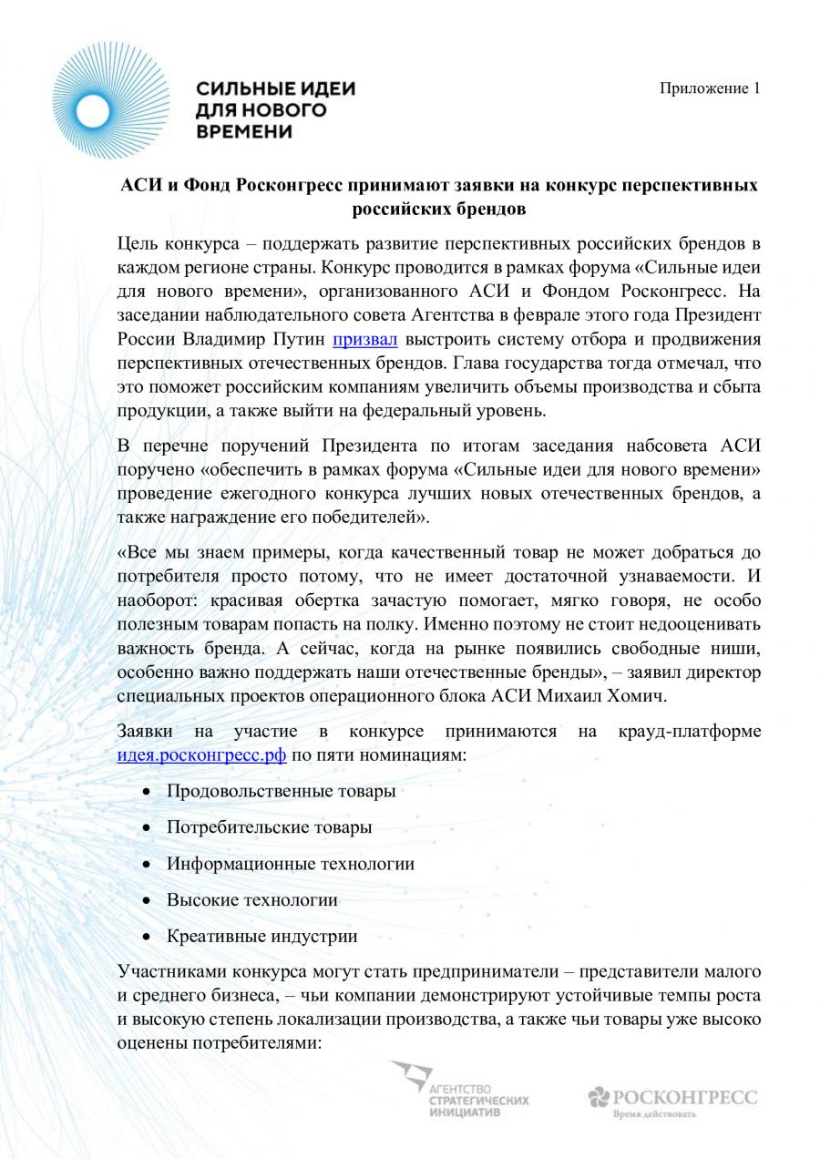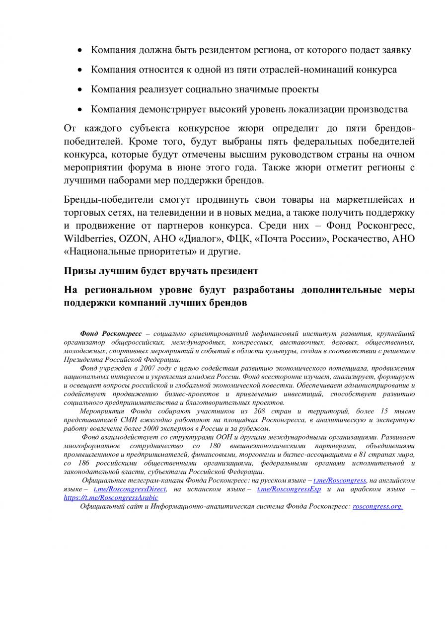 Отдельным направлением Форума в этом году станет конкурс российских брендов.