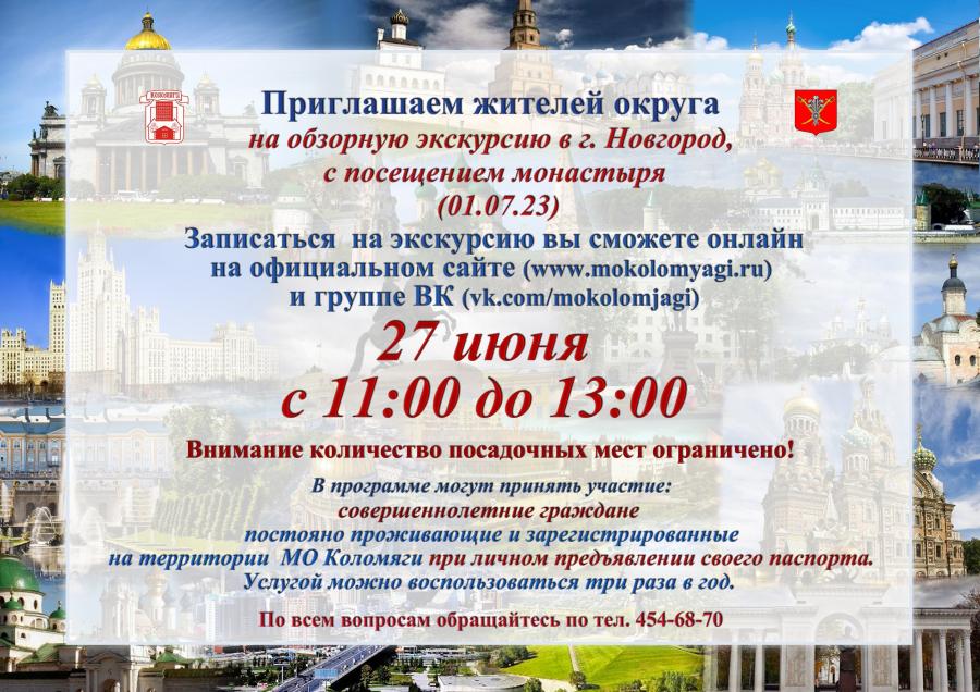 - Экскурсия для совершеннолетних граждан (от 18 лет), постоянно зарегистрированных на территории МО Коломяги