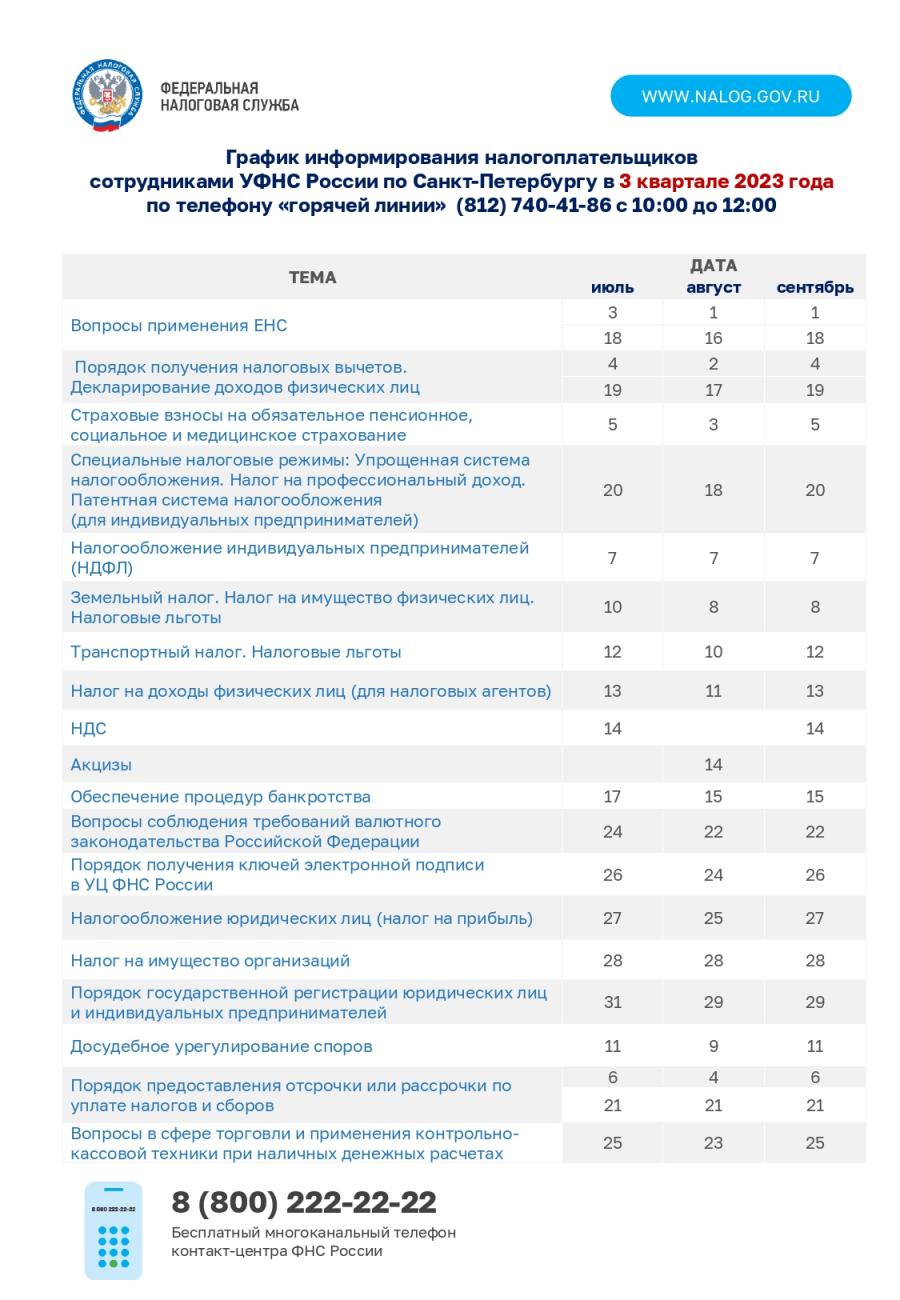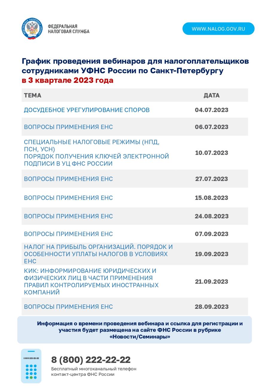График проведения вебинаров для налогоплательщиков сотрудниками УФНС России по Санкт-Петербургу в 3 квартале 2023 года