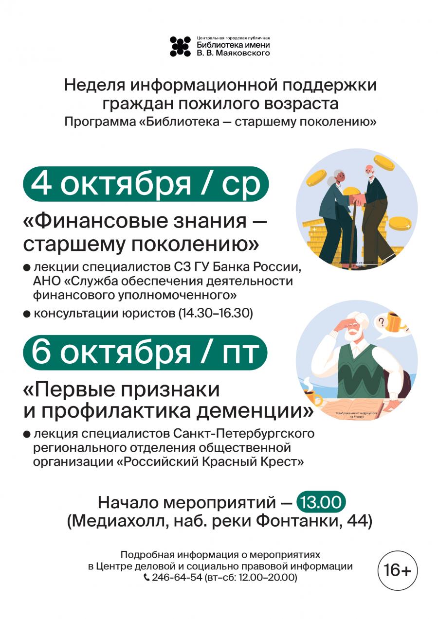 Приглашаем граждан Санкт-Петербурга на мероприятия, организованные в рамках Недели информационной поддержки граждан пожилого возраста и целевой программы