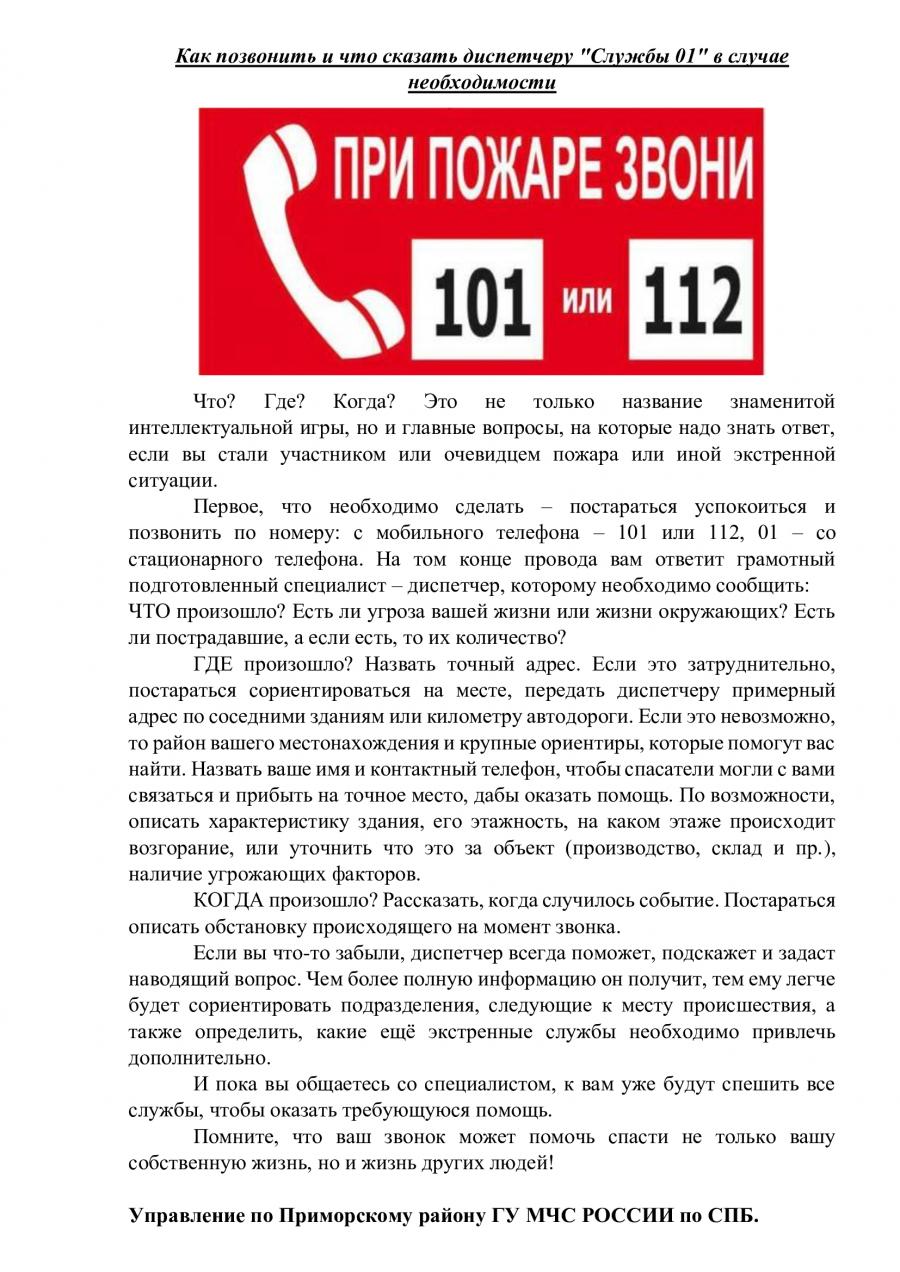 Как позвонить и что сказать диспетчеру "Службы 01" в случае необходимости