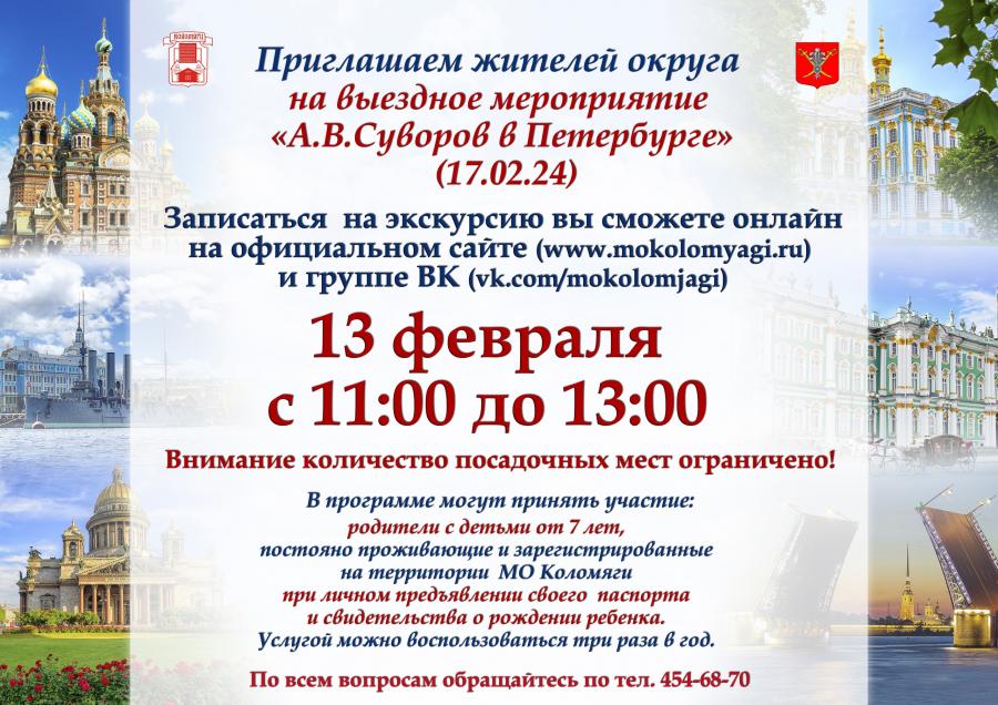 Приглашаем посетить бесплатное выездное  мероприятие (экскурсию) «А.В.Суворов в Петербурге» (с посещением Музея  А.В.Суворова на Кирочной).