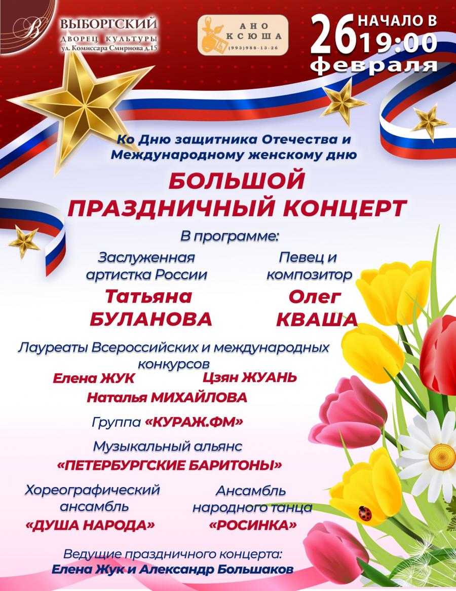 Концерт состоится в ДК Выборгский (большой зал), ул. Комиссара Смирнова, д. 15