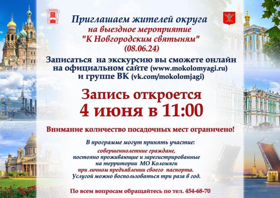 Приглашаем посетить бесплатное выездное мероприятие( экскурсию)  «К Новгородским святыням».