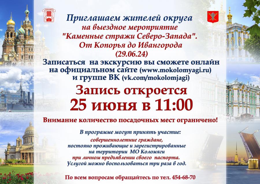 - Экскурсия для совершеннолетних граждан от 18 лет, постоянно зарегистрированных на территории МО Коломяги