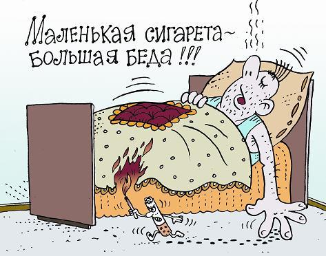 - не курите лёжа в постели или сидя в кресле - особенно, в сонливом состоянии, после приёме лекарств или употребления спиртного;