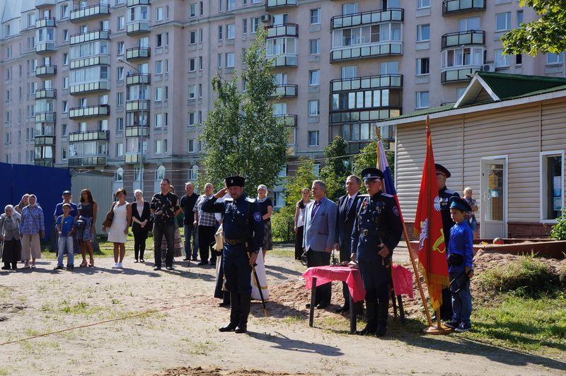 Поводом вручения штандарта Коллегией ветеранов казачьего движения Санкт-Петербурга и Ленинградской области стало успешное начало реестровой службы в муниципальном округе Коломяги по профилактике правонарушений, экстремизма, терроризма и наркомании. За четыре года существования хутора в районе все жители привыкли к тому, что казаки являются частью защиты их спокойствия и всегда доброжелательны, и приветливы к местным казакам, поэтому не удивительно, что на казачий праздник пришло много местных жителей и прихожан. Теплые слова прозвучали в адрес казаков от заместителя Главы муниципального образования А.А. Редько, Главы местной администрации В.Д. Крылова и настоятеля храма Алексея Галкина. Ныне в казачьем обществе 67 человек. В день освящения штандарта в общество были приняты еще три человека, прошедшие кандидатский стаж. Награды были вручены казакам, добившимся высоких спортивных достижений в казачьих боевых искусствах. Команда хутора «Приморский» в составе Романа Жаркова, Артема Грехова и Станислава Тарасенко стала победителем на всероссийских соревнованиях по рубке шашкой, проходивших в Донской области. Главный приз — казачью шашку завоевал Артем Грехов.