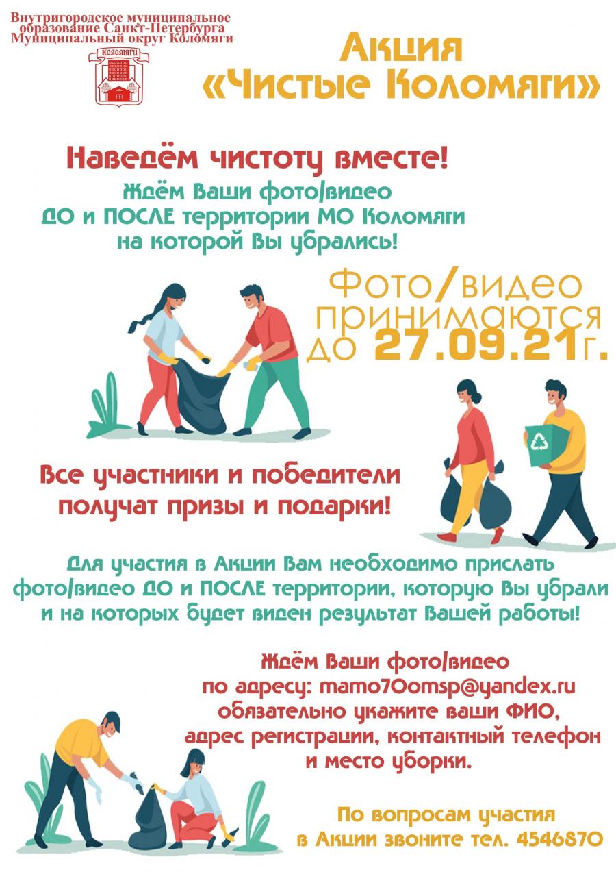 Дорогие жители! Традиционно в сентябре во всех городах России проводятся субботники! В связи с этим предлагаем Вам принять участие в нашей Акции "Чистые Коломяги"! Ждём Ваши фото/видео с субботника mamo70omsp@yandex.ru !!