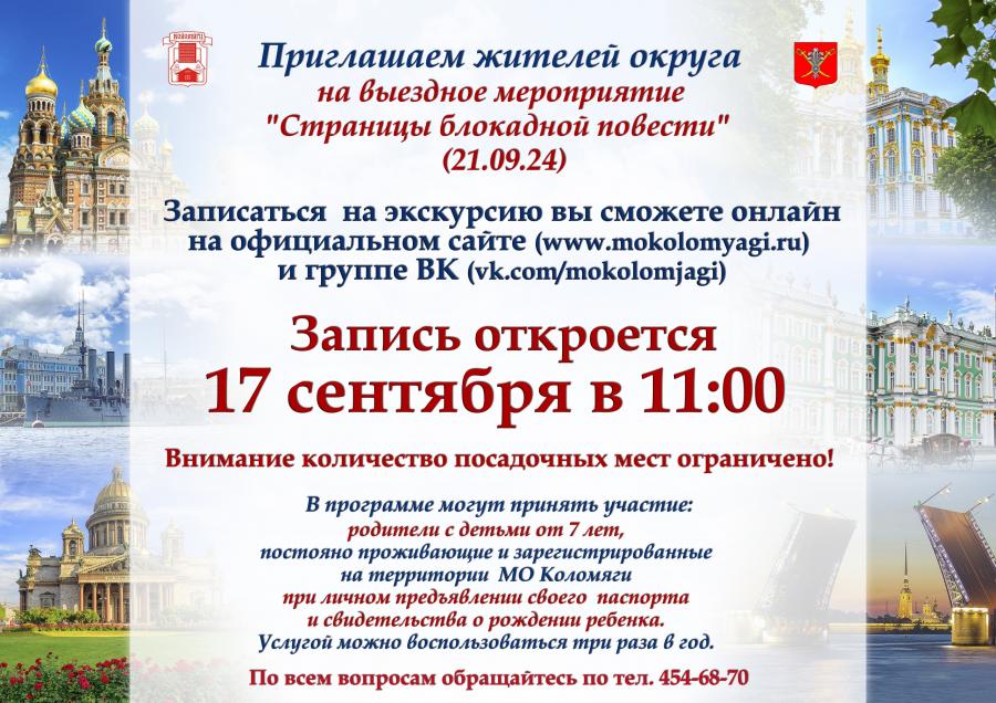 Приглашаем родителей с детьми от 7 лет посетить бесплатное выездное мероприятие «Страницы блокадной повести».