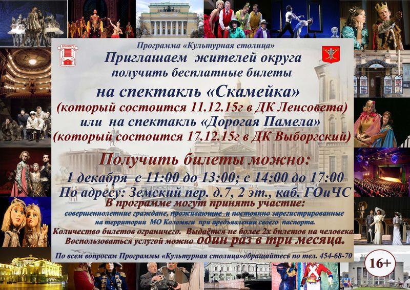 Приглашаем жителей нашего округа получить бесплатные билеты на спектакли