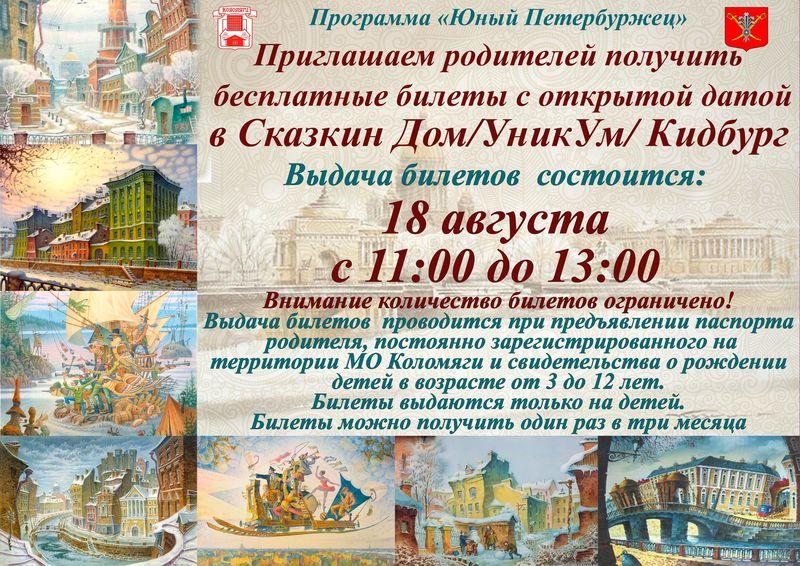 Приглашаем родителей получить билеты в Кидбург/Уникум/Сказкин дом - 18 августа с 11.00 до 13.00