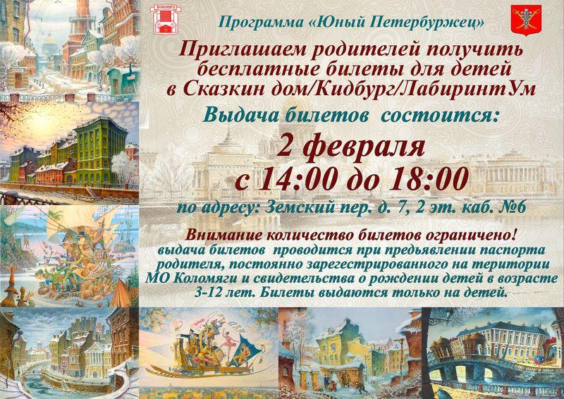 Бесплатные билеты в рамках программы "Юный Петербуржец"