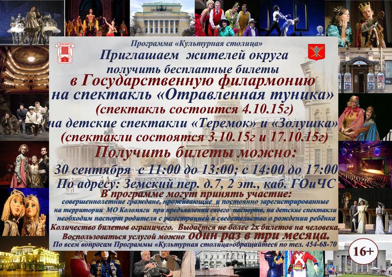 Приглашаем жителей получить бесплатные билеты в Государственную филармонию и на детские спектакли.
