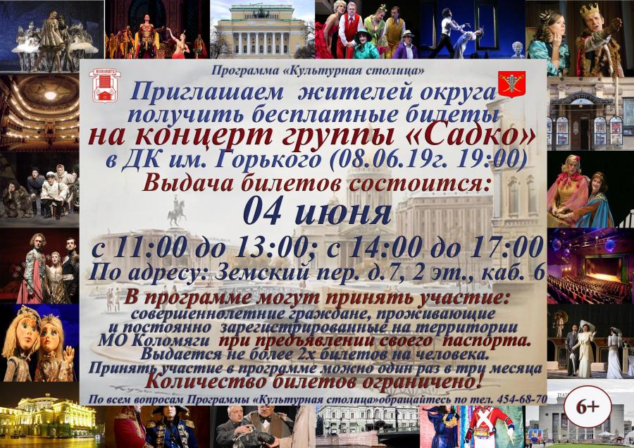 Билеты на концерт группы "Садко" в ДК им. Горького