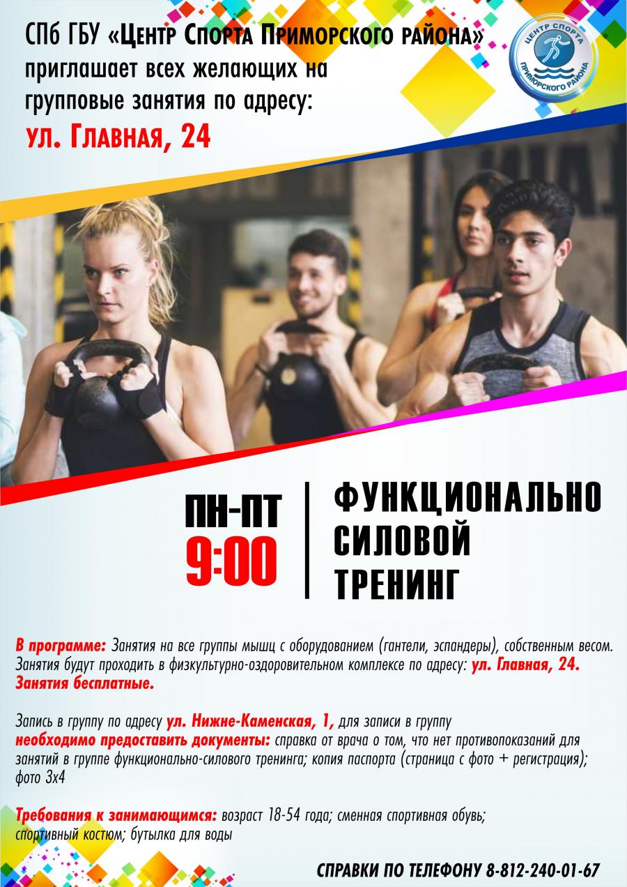 Центр спорта Приморского района приглашает на бесплатные занятия