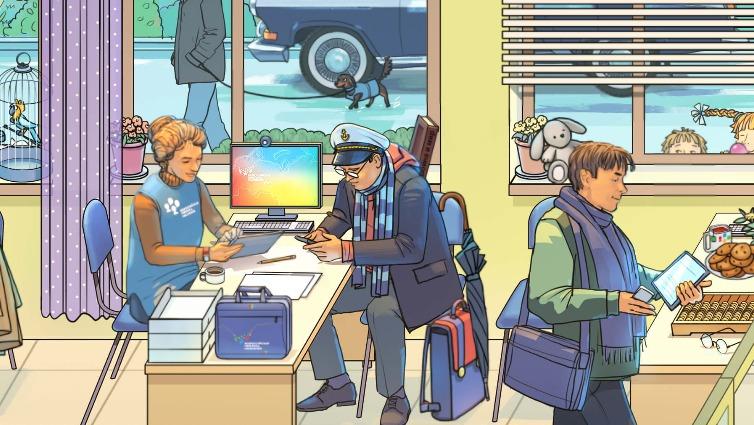 На втором этапе игрок попадает в большое офисное помещение — МФЦ, где тоже проходит перепись. Обстановка рабочая, но и в ней найдут место такие предметы, как чашка с чаем, книга, коробка со скрепками, рюкзак и т.п.