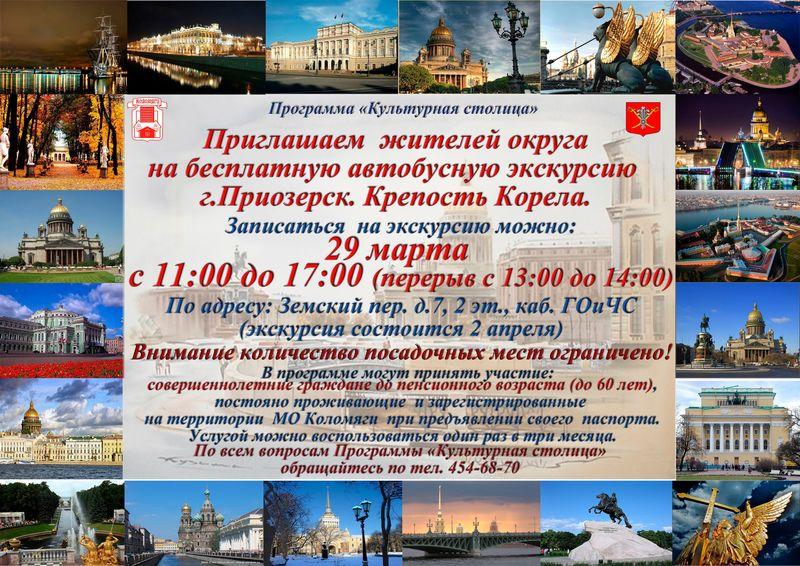 Приглашаем жителей округа на бесплатную экскурсию в г. Приозерск, крепость Корела.