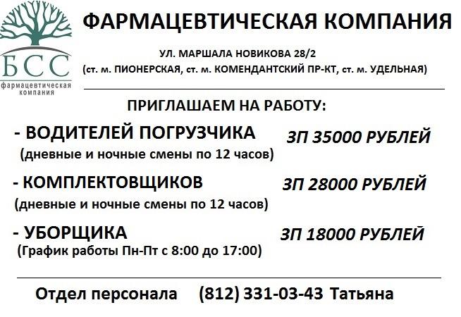 Фармацевтическая компания приглашает на работу