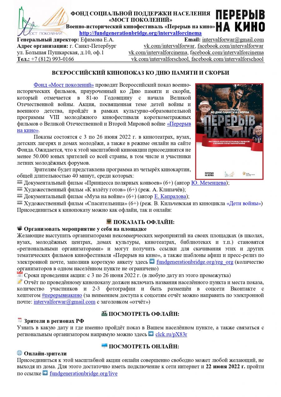 Фестиваль короткометражных фильмов о Великой Отечественной войне