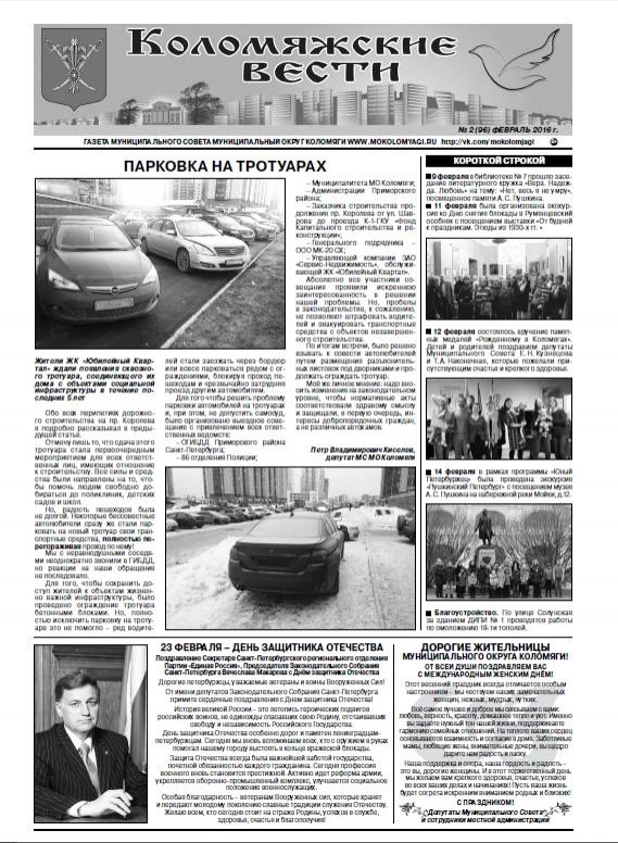 вы можете прочитать свежий номер газеты "Коломяжские вести", выпуск №2, февраль 2016 г. на нашем сайте - mokolomyagi.ru/files/file/kolom_02_16.pdf