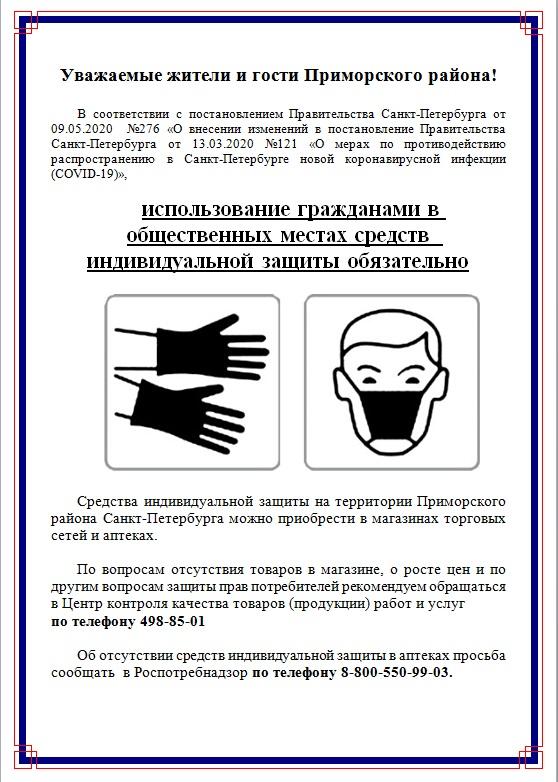 Использование средств индивидуальной защиты в общественных местах обязательно