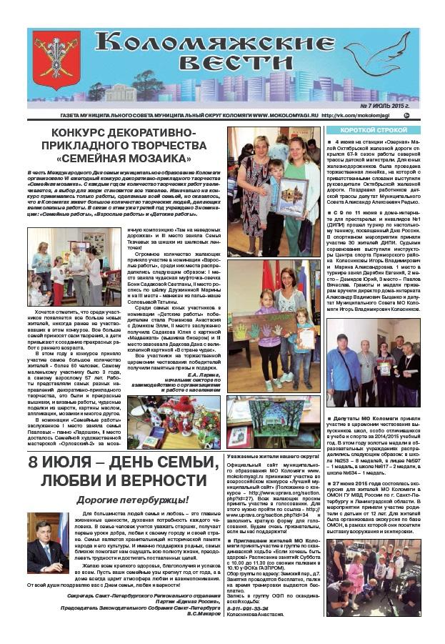 Уважаемые жители! Свежий номер газеты "Коломяжские вести" за июль 2015 г. вы можете почитать на нашем сайте - mokolomyagi.ru/files/file/7_sm3.pdf